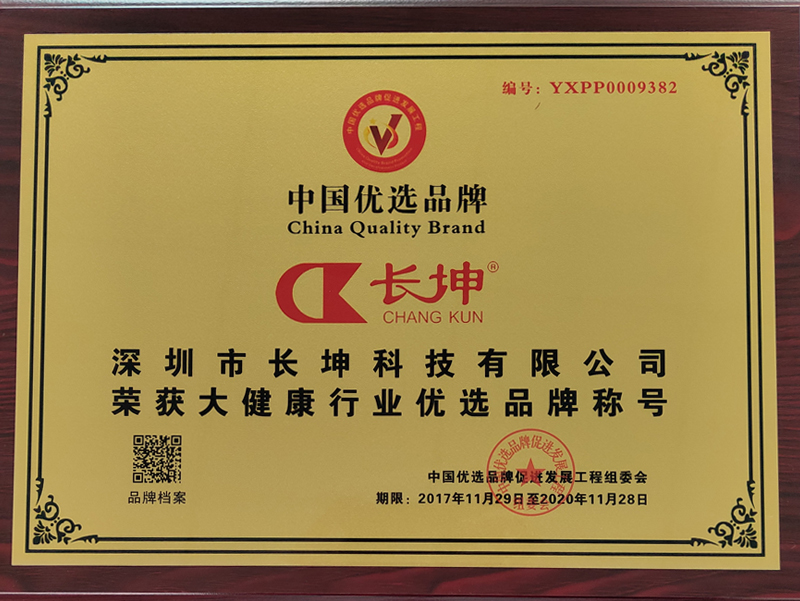2017年12月,深圳市長(zhǎng)坤科技有限公司成功被中國(guó)優(yōu)選品牌促進(jìn)發(fā)展工程選中,評(píng)選為“中國(guó)優(yōu)選品牌”,并授予其“大健康”行業(yè)優(yōu)選品牌稱(chēng)號(hào),以茲鼓勵(lì)。